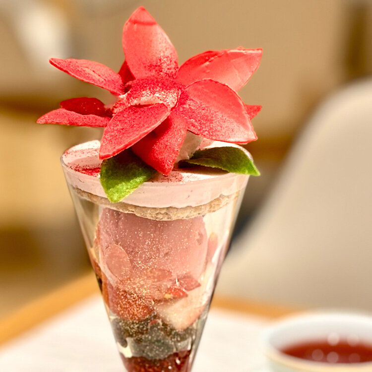 【ノエル・ルージュ・パフェ❤️】 クリスマスの象徴 ポインセチアをイメージしていて華やか〜❤️ 12月のスペシャルなパフェは 12/25(木)までの提供です❣️ お花の部分は繊細なチュイールで表現されています なんて美しいの‎⋆✴︎˚。⋆ *・゜゚・*:.。..。.:*・'(*゚▽゚*)'・*:.。. .。.:*・゜゚・ * フロマージュとベリーのハーモニーは とっても好きな味わい♡ エルダーフラワーが爽やかさを添えてくれます🌿‬ * クリスマスの気分が上がる 美しいパフェを召し上がれ🪄︎︎✨ ドリンク付き 私はハイビスカスティーを選びました🌺 * #ことりっぷと一緒 #ことりっぷ川崎 #ことりっぷ東京 #川崎 #ラゾーナ川崎 #シセイドウパーラーサロンドカフェ #資生堂パーラー #パフェ #ノエルルージュパフェ #ポインセチア #携帯写真 #fumitubu #ふみつぶ〜ぬ #fumiparfait #毎日がメリークリスマス🎄