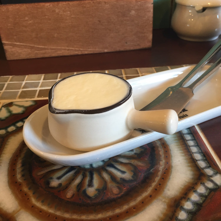 このバター!! 初めて食べた時に感動しました。 とにかく、まろやかで牛乳の風味がすごいのです!本当に美味しくて!このバターとイングリッシュマフィンがさいこーで!家庭では絶対に真似ができないなー。。