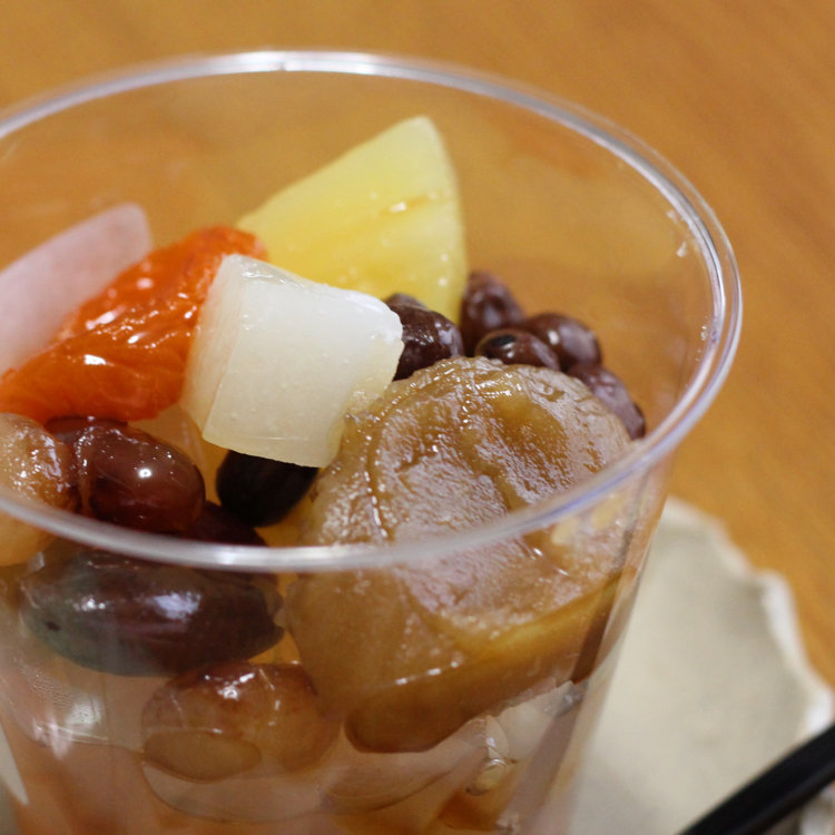 お持ち帰りのあんみつ。餡や蜜にバリエーションがあって嬉しい。美味しくてペロリです(๑'ڡ'๑)୨♡