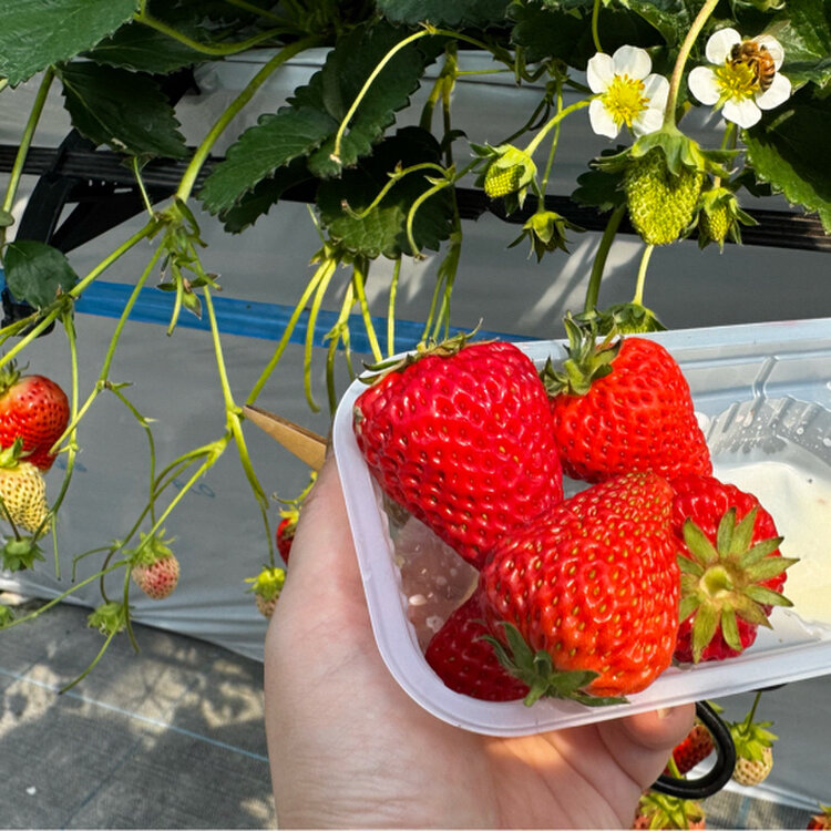 人生初めての体験をしにやってきた『ながしお農場』 地域最大級のいちご狩り農園だそうです🍓 暖かいハウス内には大粒のいちごが沢山〜😍🙌 お仕事中のミツバチたちが忙しそうに飛び回っていました🐝 勝負は30分!食べ放題✊ この日は“かおり野、紅ほっぺ、紅クイーン”の3種類を収穫できました🍓 30分か短いなぁ…と始める前は思っていましたが、20分過ぎたあたりからお腹いっぱいに😂 フォンデュ用のチョコや練乳は売店でも販売されています👛 季節が変わるとブルーベリー狩りや丹波黒豆枝豆の収穫もできるそうです👩🏻‍🌾 #フルーツ#いちご#春#収穫#体験#子どもと一緒