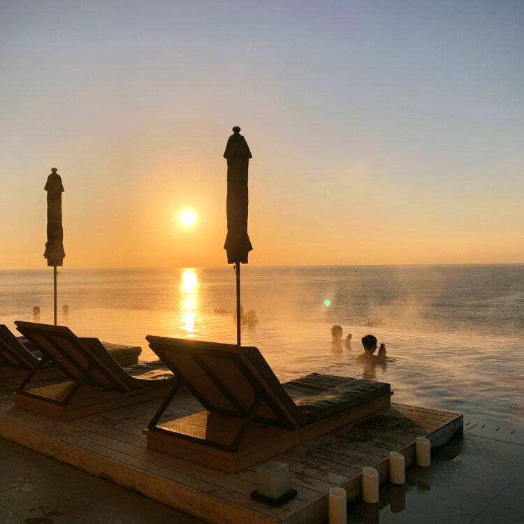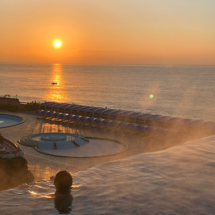 大磯プリンスホテルと提携しているスパ♨️とーーっても気持ち良かった☺️💓冬を感じさせないポカポカ感…🌞岩盤浴は3種類、サウナが1つ、そしてこの写真は海を眺めながら過ごせる温水プール👙💗ジェットバスもあります!2017年7月にオープンしたばかりで、綺麗な場所でした!私が入った時間はちょうど夕暮れ時で、インスタ映えばっちり📸👌笑 夜はなんとライトアップされるんです💡でも私は今回はその時間には行けなかったので、次行く際には是非いきたいと思います😊