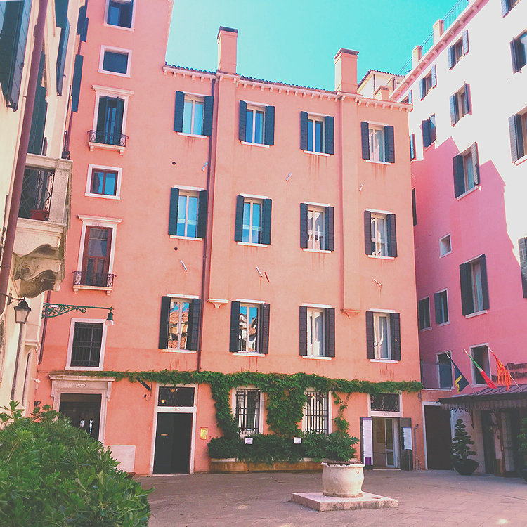 ベネチアの裏路地の小さな広場*°ベネチアの道はとっても複雑でまるで迷路みたいな構造だからこそ、突然ひょっこりと現れるこういう小さな広場にたどり着くと安心します(*´ω`*)...♪ #イタリア#ベネチア#複雑な道#朗らか#小さな広場#ほっこり#迷路#裏路地