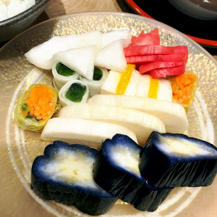 京都のお土産で選ばれるNo.1は やっぱり 京漬け物!らしいです😊 祇園店では 2階に こじんまりとした飲食スペースがあって、京漬け物をつかったお食事ができます♪ 一人旅の女性でも入りやすく、ちょっと穴場かも♪ 京漬け物の手まり寿司✨他には湯葉の揚げ物や生麩や デザートもついてました✨