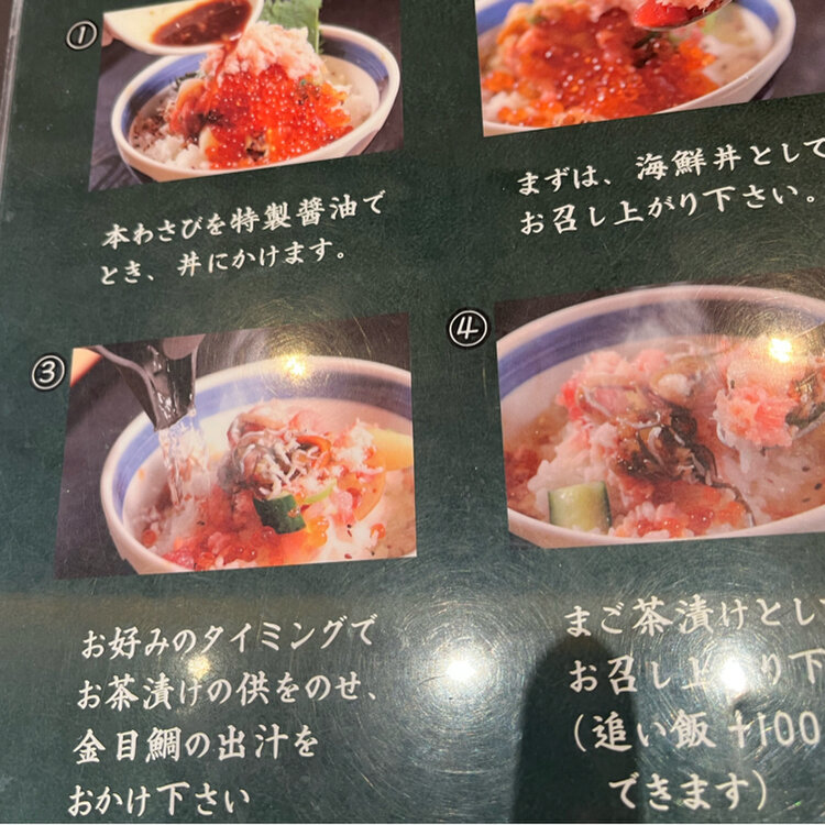 メニューは、壱鉄、弐鉄、参鉄、五鉄の4つの海鮮丼と至ってシンプルですが、一度で二度おいしい丼なんです。