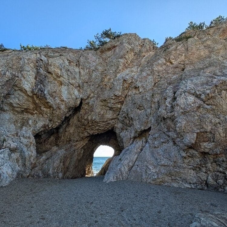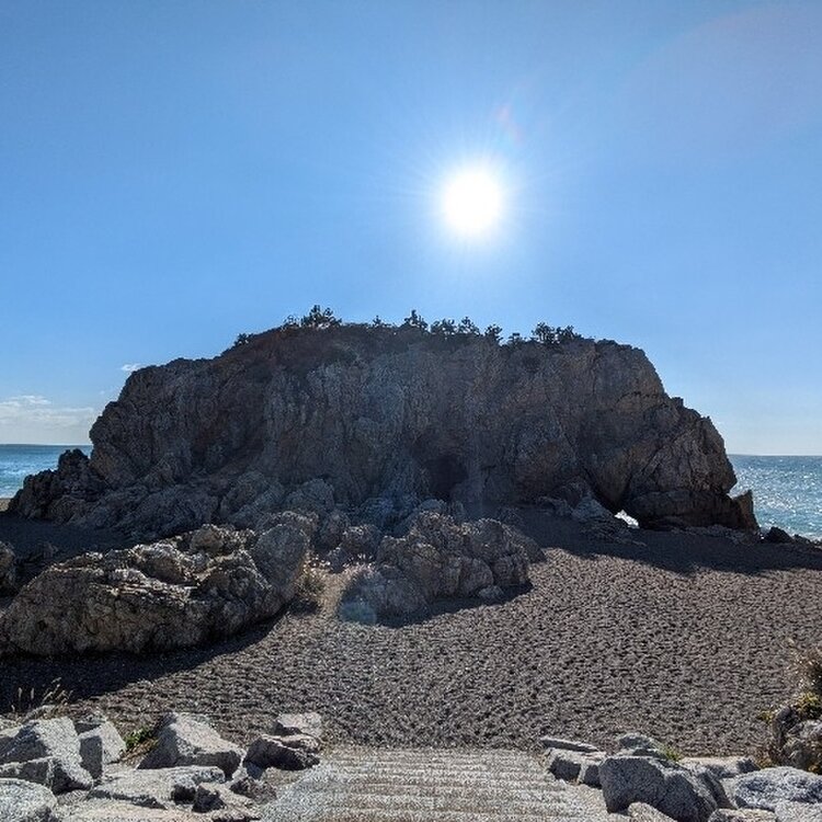一泊二日 愛知旅行⑦ 〜渥美半島〜 日出の石門✨️ 悠久の時がつくり出した神秘的な自然の造形✨️ 海の中でポッカリとおおきな穴をあけている不思議な岩「日出石門(ひいのせきもん)」は、長い時間をかけて、太平洋の荒波によって真ん中が侵食され洞穴となったもの。沖の石門、岸の石門の2つがあり、いずれも自然の強さと神秘に圧倒されます。 日の出のときに美しいシルエットを見せてくれるようで、私達が宿から日の出を見ている時間帯にも、こちらで日の出を見ている方々が何人かいました😊 私達も行きたかったけど、寒くて日の出時間は諦めましたが😆 駐車場から約300メートル約179階段降りると、最後は階段の無い急な下り坂かなり足に負担がかかりキツイですが、それでもこれだけの絶景✨️✨️ 見る価値ありです😊 どうする家康のロケでも使われていたようです💡 2025.11.26 #日出の石門 #開運旅