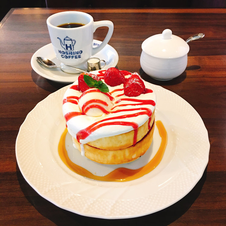 今日は暑いですね(^◇^;) 星乃珈琲店で季節限定のメニュー、苺とふんわりクリームのスフレパンケーキを食べました!(╹◡╹) ふわっふわのスフレパンケーキ美味しいですよ!