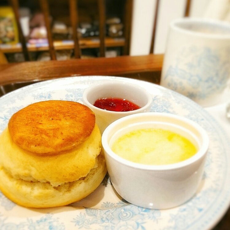 イートインでクリームティーセットを。スコーンは大きめでさくふわぽろぽろ。何とも本場っぽい。ロッダのクロテッドクリームが丸々ひとつついてきます。贅沢~✨