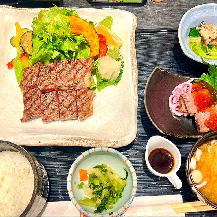 米沢イコール米沢牛🐂 昨日は赤湯でライブ参戦♪ 終了後米沢まで引き返し一泊。 今回は観光も無くただただ米沢牛が食べたい🤤 どうしてもステーキ食べて帰る! 駅の前には「米沢牛」の文字が至る所に💕 意気込んで「牛鍋おおき」さんに予約入れてました(笑) こちらは牛鍋も有名ですが迷う事なくサーロインステーキ御膳に決めました🥩 美味しかったのは見ての通りです💕 柔らか〜い💕 決してしつこく無い油の甘さ💕 何回か噛んだら無くなっちゃいそう😆 今まで食べて来たのはほんとに牛肉だったのかと疑問に思った私でした(笑) 私としてはだいぶ贅沢だったけど奮発して良かったぁ😂 #初めての米沢 #米沢牛