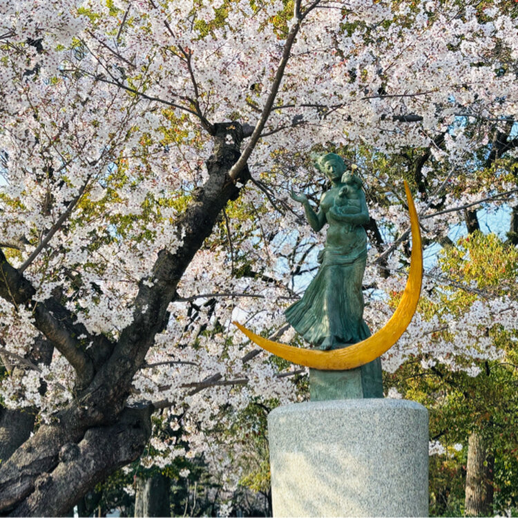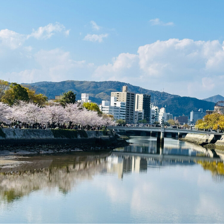 *平和記念公園* 桜を見に平和記念公園へ。 元安川沿いに満開の桜が並びます。 桜の下には多くの花見客。 いろんな国の方が楽しまれていました。 ゆっくり平和記念公園内を歩いて お花見を楽しみました。 #ちいさな列車旅 #私のことりっぷ旅 #桜旅 #広島桜旅2026 #日帰り旅 #ひとり旅 #電車旅 #ことりっぷ広島 #広島 #平和記念公園