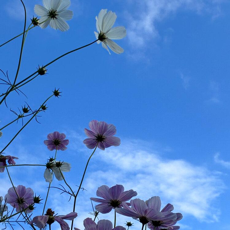 ポピーの隙間からチラりんとお顔を覗かせるカモミールちゃん🌿風に乗ってゆらゆらと踊るお花たちがめちゃんこかわゆい〜(,,>᎑<,,)