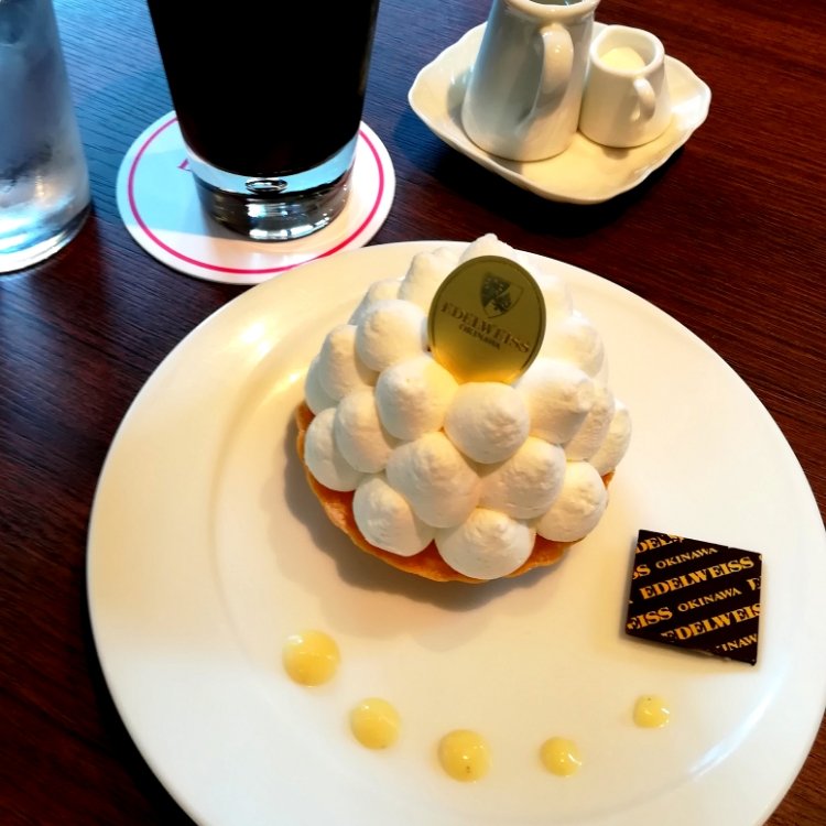 沖縄の高級洋菓子屋さんといえばの エーデルワイス 沖縄産のなんとかレモンのタルト 暑いからサッパリした甘さがうれしいです