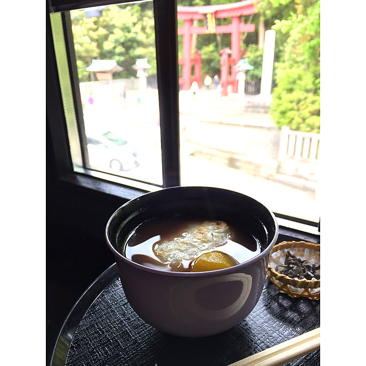 ドリンクは赤しそのホットティー。冷たい赤しそジュースもあり炭酸割可。