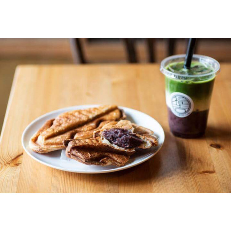 旭川の「素敵」がつまっている「福吉カフェ」の名物は、バターが香る、特注デニッシュ生地に具材をはさみ、焼き上げる「トキワ焼き」です。 たっぷり入った粒あんは、旭川の老舗・福居製餡所が美瑛産小豆「しゅまり」を炊いた特注品。 粒あん、牛乳、抹茶がきれいな三層をつくる「福吉らて」と一緒に召し上がれ。