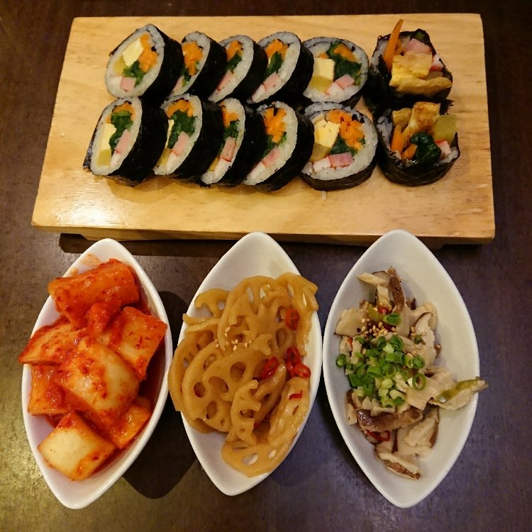久しぶりに新大久保まで足を延ばしてみました。 名物の明洞のりまきとサービスの小皿三種。韓国料理はこのおまけが嬉しい🎵🎵