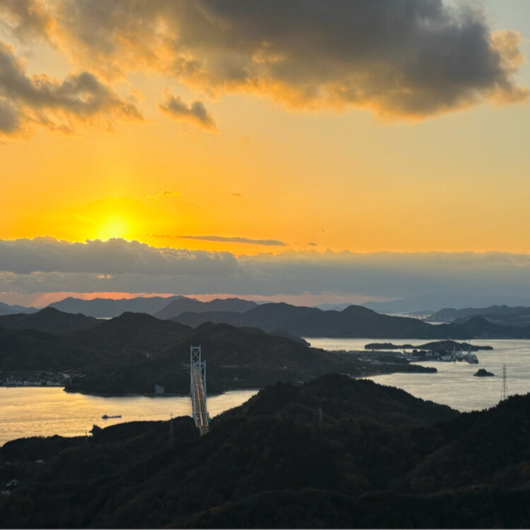 *高見山* 夕方、高見山へ。 この日も雲が覆っていましたが 雲に隠れる前にオレンジ色の世界が広がりました。 冬の空は光が綺麗に届いてくる気がします。 #私のことりっぷ旅 #尾道 #向島 #高見山 #高見山展望台 #開運旅