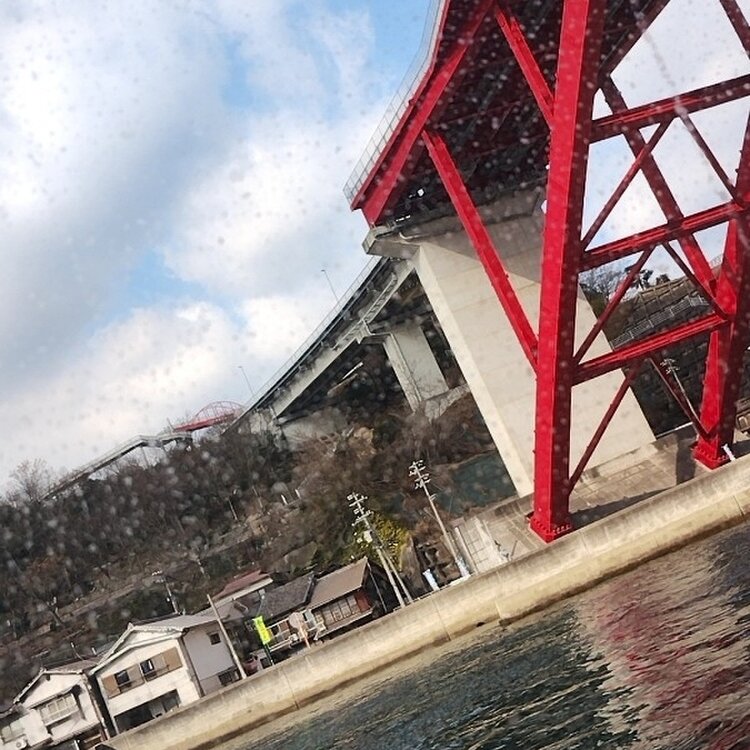 推し活LIVE遠征、宮本浩次🎵愛媛県松山 音戸大橋くぐる 出航してしばらくすると、呉市の本土と 倉橋島を結ぶ音戸大橋の下をくぐります。 車🚗がくるくる回るループ線も見えました。 当然ですが、瀬戸内海は水平線が見えることなく、 常に視界には島があり、民家はもちろん スーパーや銀行などいろんなものが見えるのが 面白いです😊 タンカーのような大きな船や小さな船が 行き交います🛥️ 昨夜眠れなくて眠いのに、寝るのが もったいなくて、うとうとしながら 瀬戸内海の景色を眺めてました。 黄砂?雨?か船の窓ガラスが泥水を シャワー🚿でかけたかのように汚れていて、 写真がきれいに撮れなくて残念😞 #広島県 #瀬戸内海 #音戸大橋 #呉 #倉橋島 #推し活