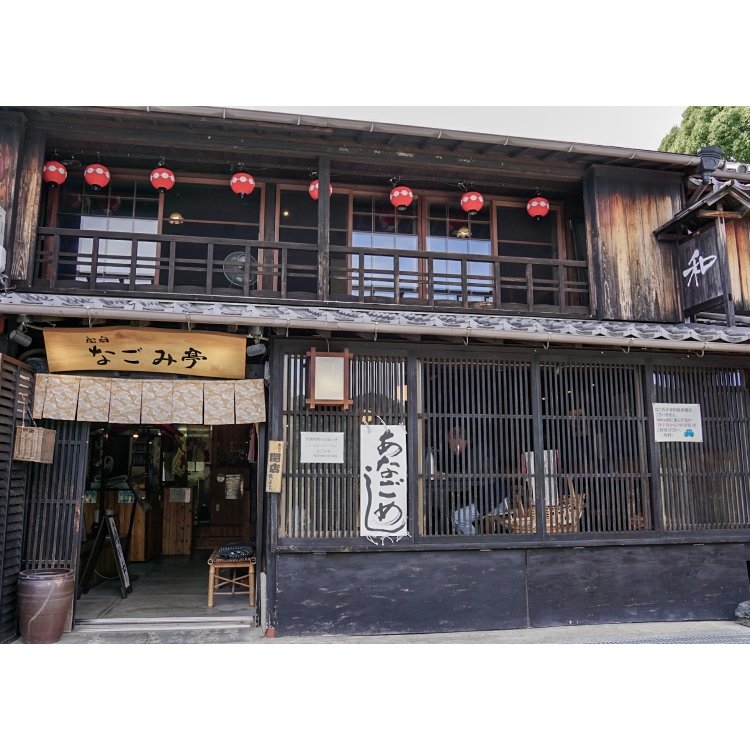 さてこのなごみ亭さん、写真の下が1階席。格子越しの港と島の風景と和の灯り、梁なども太く立派でした。