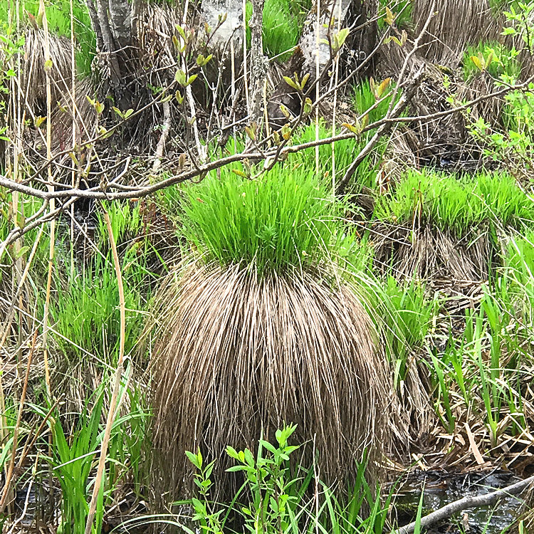 谷地坊主は次のようにできて行きます。スゲが集まり1つの株を作ることがあります。
