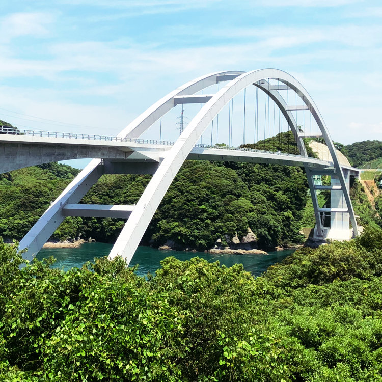 天草へのドライブ🚗 (2018.6.3) 新天草1号橋『天城橋』 平成30年5月20日開通! 上天草市と宇城市を結ぶ橋。それぞれから1文字を取ってネーミング🍀両地域の架け橋になって欲しいとの願いが込められているとの事。 全長463m、メソッドリブ形式のアーチ橋としては国内最大級✨ 新旧両方の1号橋は、旧1号橋近くの天門橋展望所から見る事ができますよ❣️