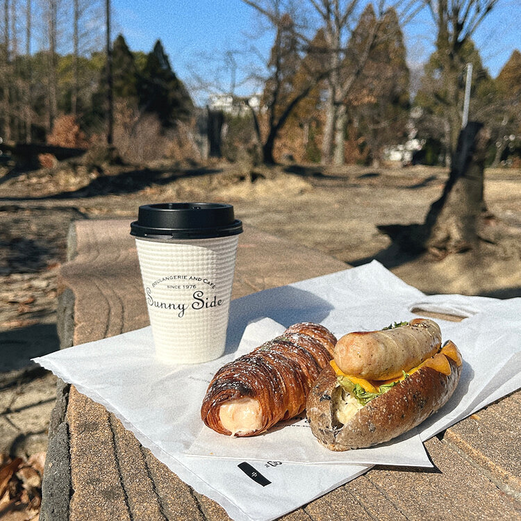 公園ではホットドッグ、いちご好きのいちごミルクカスタードクローネを頂きました。
