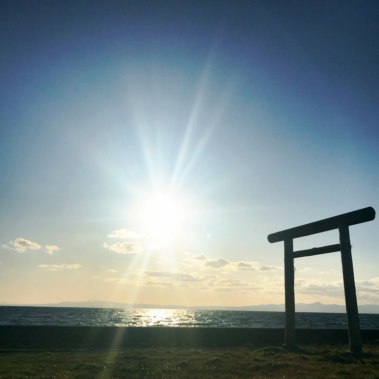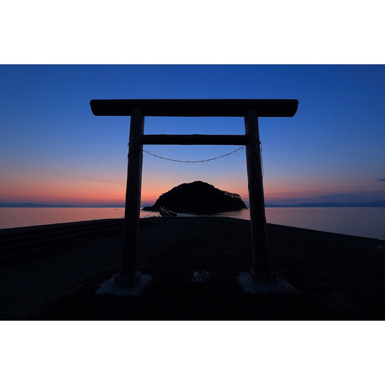 夏泊半島の大島の途中に鳥居があります⛩ 何でこんな所にあるんでしょう🤔 夕暮れ時の太陽が海を照らしていました✨✨ #夏泊半島 #夕暮れの海 #わたしの街