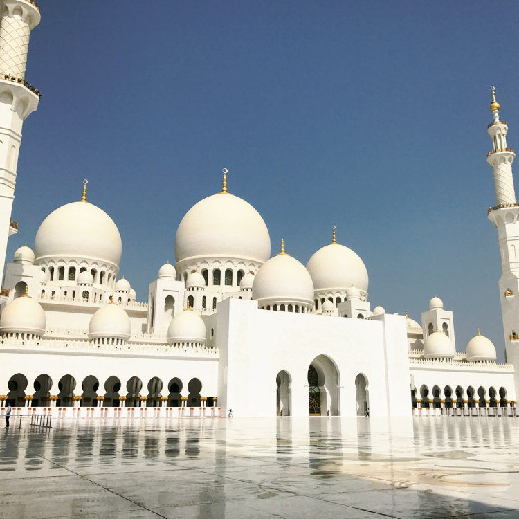 ラマダン中のUAEへ行ってきました。 観光客は断食する必要はありませんが、日中人前での飲食を控えます。 この日の気温は47度。 砂漠のイメージが強い国ですが沿岸部は蒸し暑いです💦 画像はアブダビのシェイクザイードモスク🕌 世界で8番目に大きいモスクで、世界で1番大きなシャンデリアがあります✨ ひとつなぎの絨毯の製作には1200人が携わっています。
