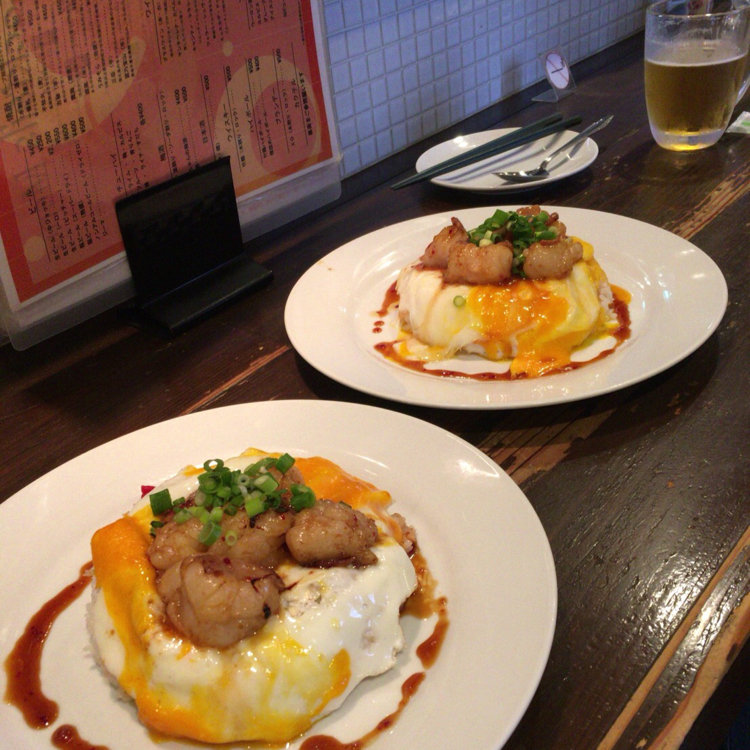 ヤキニクライス絶品です!やっぱりホルモンには生ビールが1番合いますε=(´∀`*)