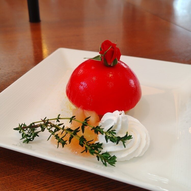 小さなバラの花があることで、リンゴに見えますね🍎✨