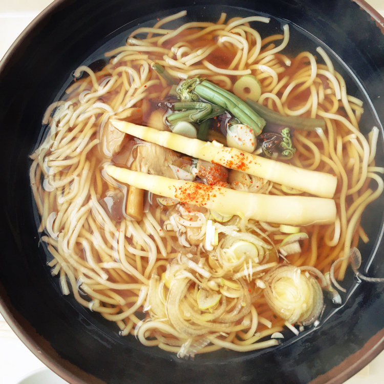 山菜が入った青森そばを 出汁がきいたしょっぱ美味いそばは最高✨ #わたしの街 #青森#青森そば #八甲田山#八甲田