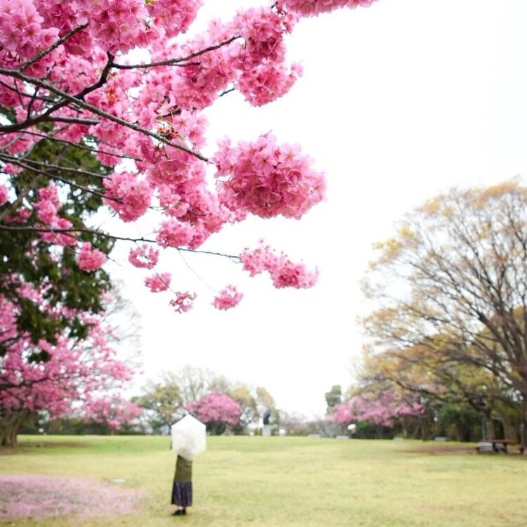 横浜原産の「横浜緋桜」を満開のタイミングで観ることが出来ました🌸 弱い雨の中、より鮮やかな色を見せてくれた緋桜に感謝✨ #桜 #横浜