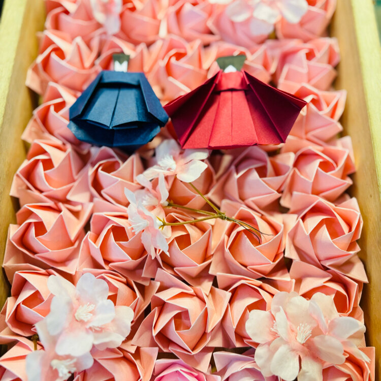 *ひな祭り🎎* 3月の福山観光案内所は ひな祭りの福山ローズ。 赤とコーラルピンクのバラ、 かわいさが溢れていました。 #ちいさな列車旅 #私のことりっぷ旅 #福山 #観光案内所 #バラ #折り紙 #折りばら #福山駅 #ひな祭り