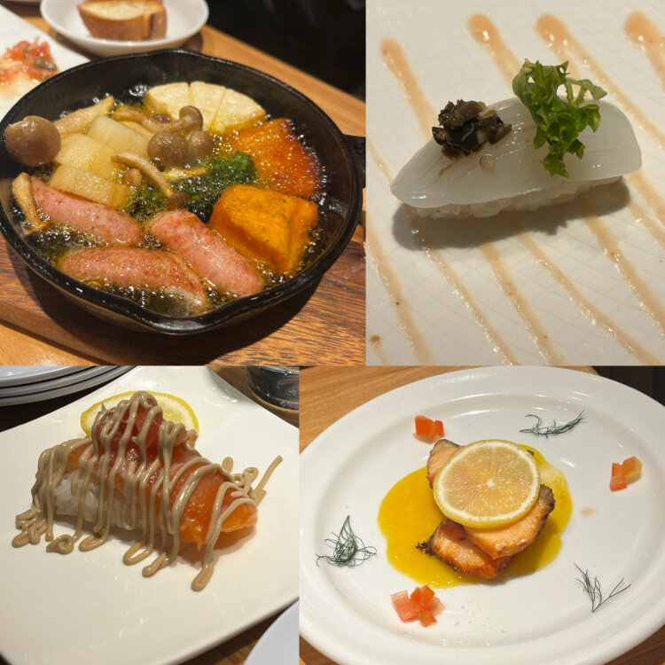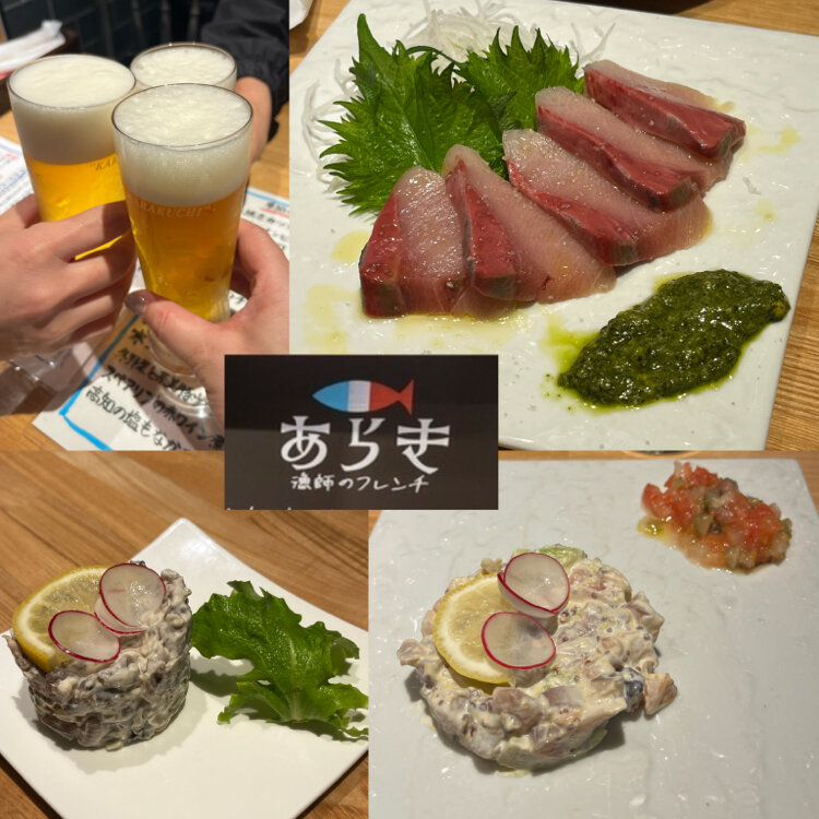 🚃イザ神戸🇫🇷フレンチあらき🐟 仕事終わりに三宮神戸高架下へ 急遽💡決めたお店d(^_^o) リーズナブルで美味しかったです! 📝オーダー ⚫︎わら焼きカツオのタルタル ⚫︎ぶりのカルパッチョ ⚫︎海鮮とアボカドのタルタル仕立て ラヴィコットソース ⚫︎冬野菜と茶美豚のアヒージョ ⚫︎生ハムで包んだサーモンのムニエル オレンジディルの甘いソース ⚫︎フレンチフライポテト(プレーン) ⚫︎イカのフレンチ寿司 ⚫︎サーモンのフレンチ寿司 ⚫︎アワビのカルパッチョ ⚫︎フレンチ風おでん ポトフ仕立て ・たまご トリュフソース ・大根 ポルチーニソース ⚫︎トリュフクリームリゾット ‥ 漁師のフレンチ あらき EKIZO神戸三宮店 078-325-5033 兵庫県神戸市中央区加納町4-2-1 EKIZO神戸三宮 西館 1F https://tabelog.com/hyogo/A2801/A280101/28060187/ 実家は高知県の宿毛市(すくもし)で漁師さんなんだそうです。 ‥ 🌆5枚目は出張先のビルからの夕焼けです😊 #出張 #神戸 #三宮 #三ノ宮 #高架下 #ディナー #漁師のフレンチ #あらき #開運旅 2026/2/26