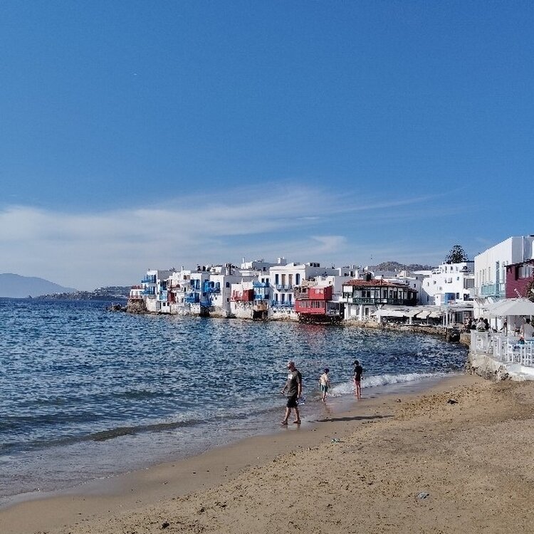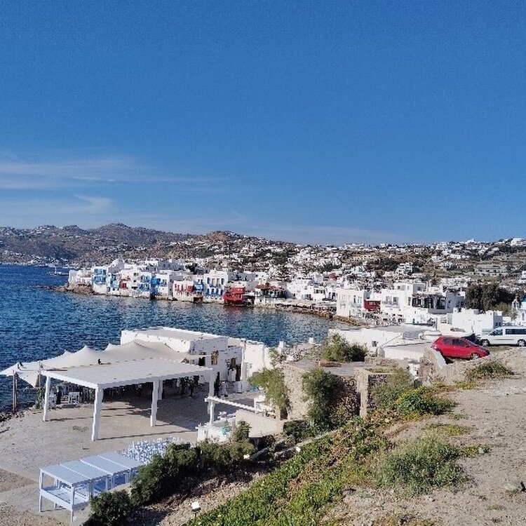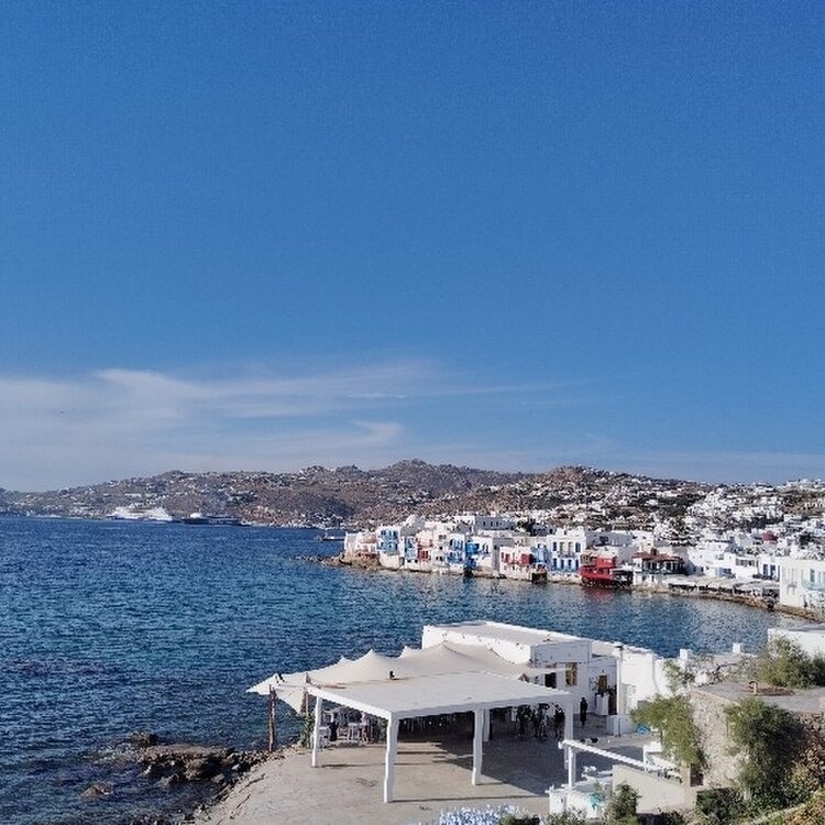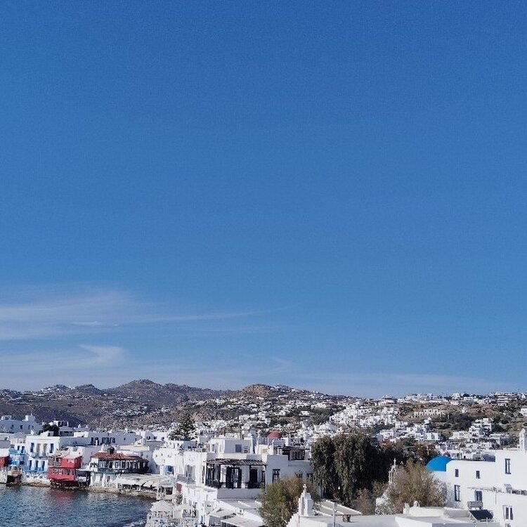 #ギリシアミコノス・・・ ミコノス島には崖は有りますが大きな山は 有りません🌊🌊🌊 丘から見渡せる範囲が広いので 爽快です😄😄😄 後 サントリーニ島も良いですよ どちらでしたか🤔🤔🤔 火山🌋の爆発でしまの大半が無くなったらしい😅😅😅