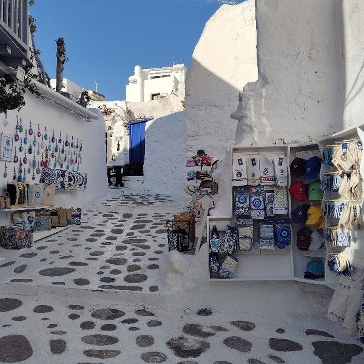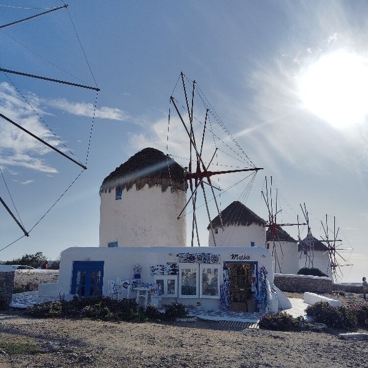 #ギリシアミコノス・・・ 散策二 ミコノスと云えば 青い空、白い壁、風車と 路地ですね~🤔🤔🤔