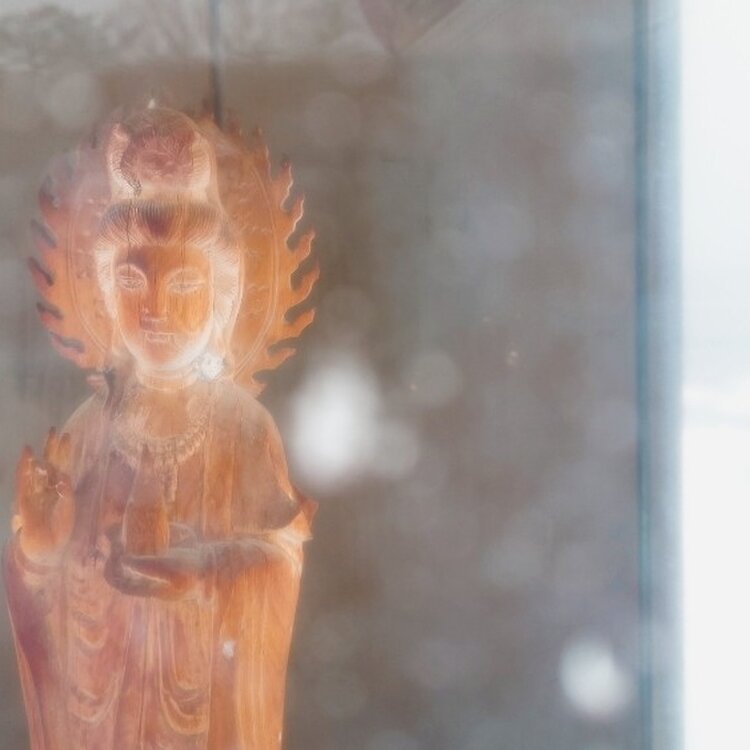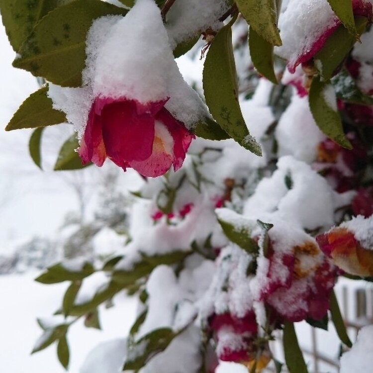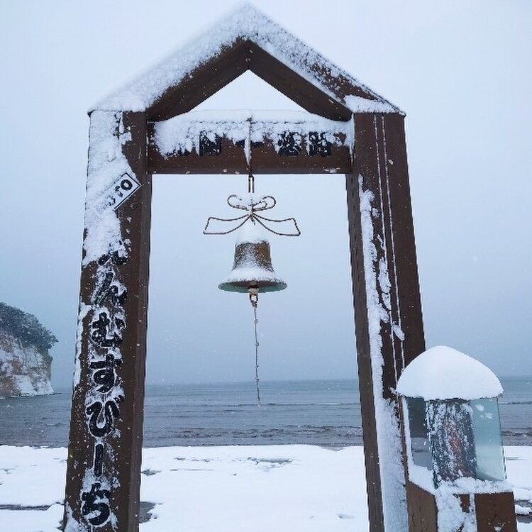 石川の旅~雪の見附島~ 白の見附島。 島に渡る道も今日ばかりは真っ白。 寒さに耐える仏様と椿。 #石川県#珠洲市#見附島#雪