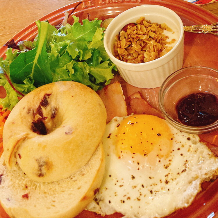【カフェ トキオナ】 大阪天満宮の近くにあるモーニングが楽しめるお店🍽️✨ 参道へと続くアーケードの一角にあり、この日もお客さんで賑わっていました。 この日は昼過ぎの来店でしたが終日モーニングを提供している日だったので写真はモーニングで食べられるなんてプレートの一つ🥐🥐 クランベリーのベーグルと塩っぱいベーコンや目玉焼きが相性抜群!ベーグルはバンズのように2枚に切り分けられているのでハンバーガーのようにおかずを挟んで食べることも可能。 二階席に案内していただいたのですがソファ席があったり、2階にも店員さんが待機していて快適でした。 次は平日の早朝限定モーニングを狙いたいところ! #大阪ベーカリー #大阪モーニング #大阪天満宮 #大阪府北区 #大阪 #ベーカリー #モーニング #モーニングプレート #人気店