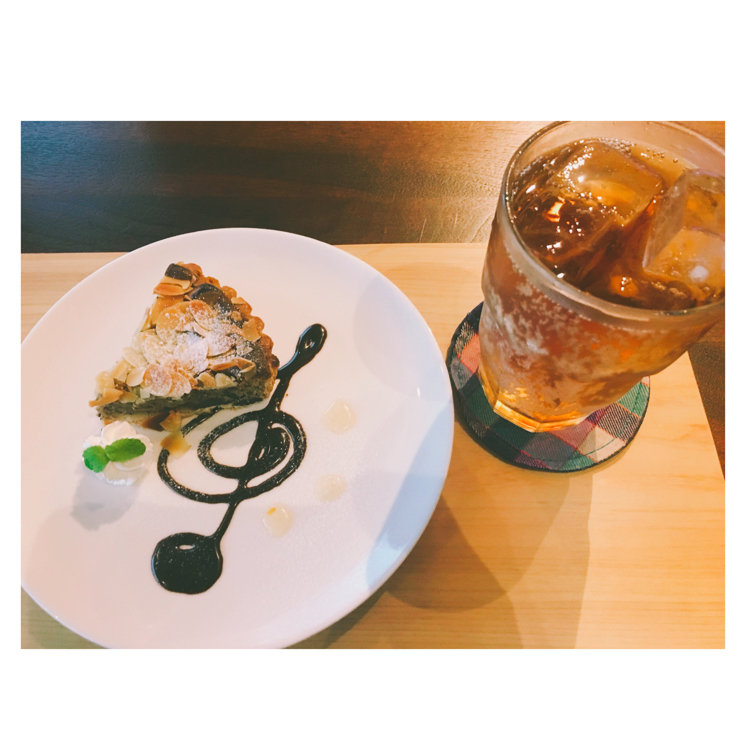 ゆらのガーデンのお城の下?ってカフェに行きました。今日はあいにくの雨だったから人もいなくて貸切だった。 ジンジャーエール(辛口)とりんご紅茶チョコタルトのケーキを食べました♡ ジャズやってるらしい〜今度は夜に行きたいな。