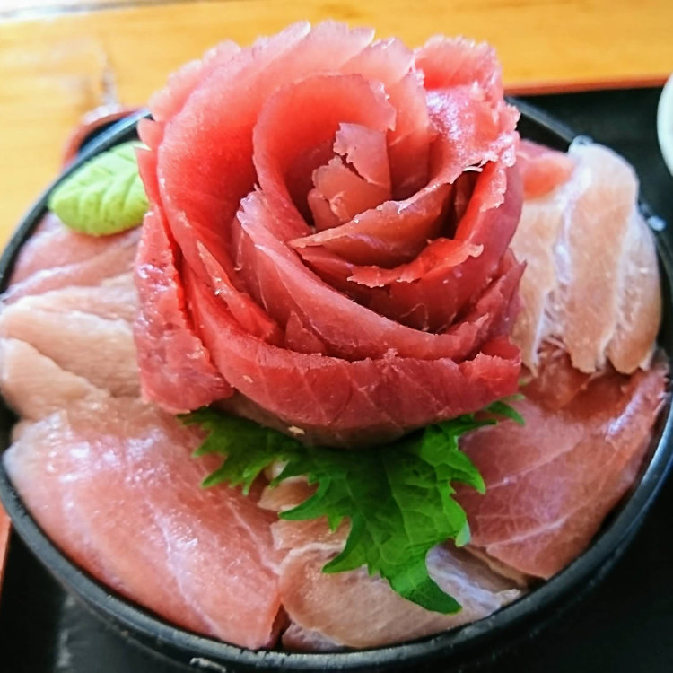 どんぶりの上には、大きなバラが咲いている様です✨😃 #海鮮丼 #鴨川 #鴨川ランチ #デカ盛り