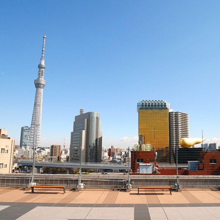 スカイツリーと金色オブジェのアサヒビルを眺めながら、ほっと一休みできます。