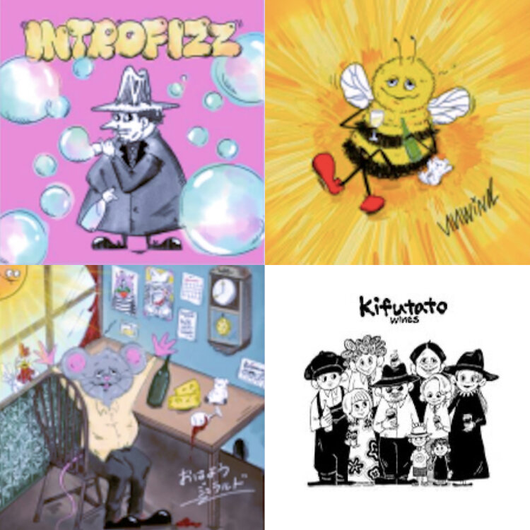 泡のお酒は食事の最初に楽しむことが多いので、曲の始まりである「Intro」に、発泡するという意味をもつ「fizz」を合わせた造語を銘柄名にしました。このペティアンのイメージをバブルが広がるカラフルな色使いでエチケットに表しました。