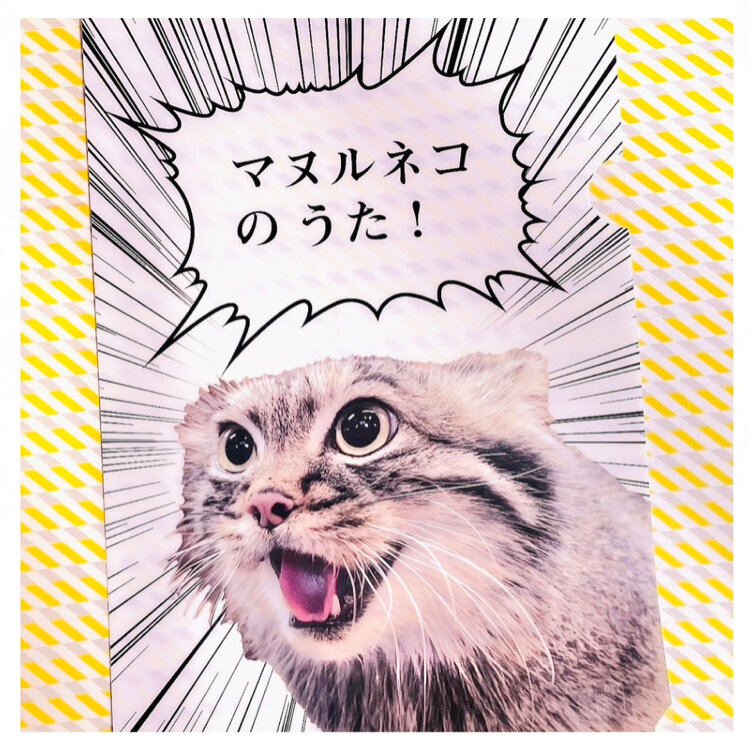 ニャーニャーニャー ともだちからのお土産だニャー インパクト♬ さて、クリアファイル 何に使うか しばしアートとして 飾ってるニャー #マヌルネコ #お土産 #猫の日 #ありがとう
