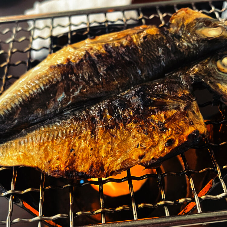 お腹も、ぐぅーっと空いてきた中の朝ごはんは目の前で焼き上げていく鯵の干物に魅了されました😍✨