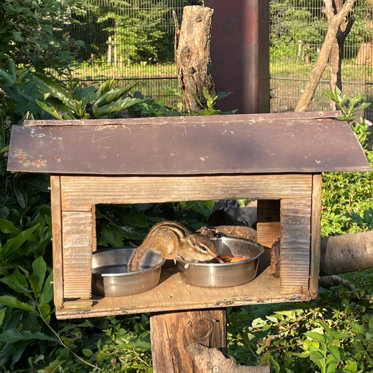 柵と鳥除けネットで覆われた広い空間にシマリスたちが暮らしています🐿