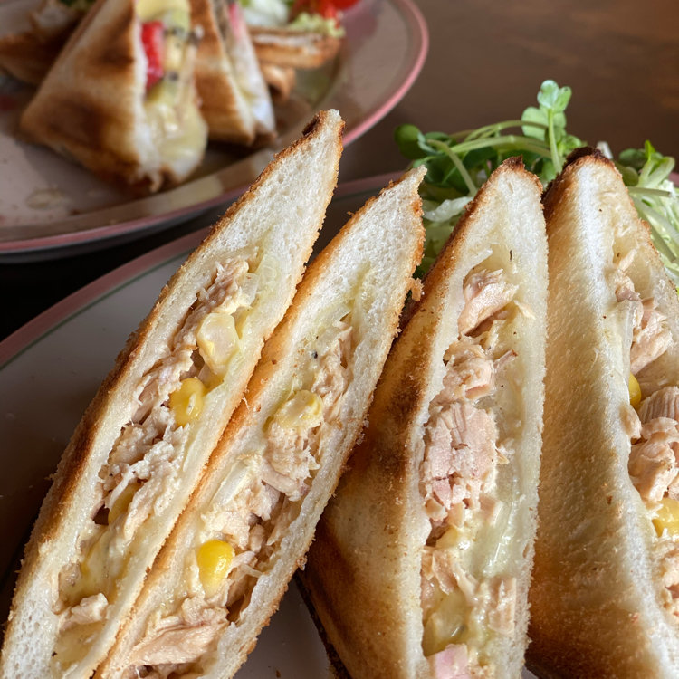 ホットサンドが美味しかった! お皿には野菜も添えられていて、ボリューム満点💯でした😄 ちなみに手前はツナサンド、奥にチラリと見えるのがフルーツサンド、です! #わたしの街 #高山