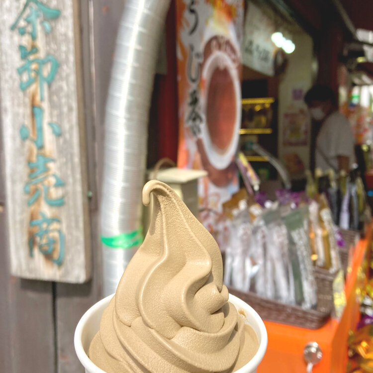 人形町にある、老舗のほうじ茶専門店「森乃園」。自家焙煎したという、極上ほうじ茶を使ったソフトクリームです。芳ばしく、落ち着いた甘さがやみつきで、何度もリピートしてしまいます。