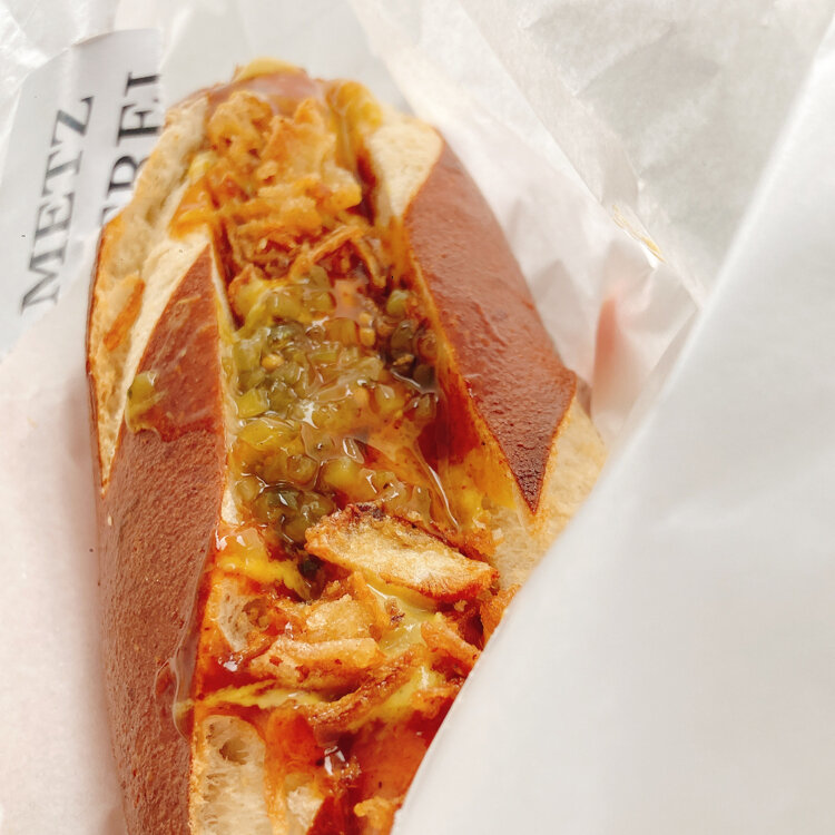 【メッツゲライテラ】 東区にある自家製ソーセージやハムを使ったワンハンドメニューやお惣菜が買えるお肉屋さん🍖✨ 通るたびにカフェ営業の旗やテイクアウト片手に出てくるお客さんをみかけて気になっていたお店です。 今回はテイクアウト利用🥡! 肉屋さん同様にソーセージやハムの量り売りは勿論、写真のようなソーセージやハムをプレッツェルで挟んだ軽食にサラダ、スープやドリンクの販売があります。 奥にはカフェエリアがあり店内で食べることも可能👌 温かくカリッとしたプレッツェルが美味しかった🥨 カップにはポトフを入れてもらいましたがベーコンがたくさん入っていてソーセージ入りのものを頼まなくても十分な食べ応えでした。 来月は周年祭ということで新メニューやお得な商品も出る予定とのこと。 #新潟グルメ #新潟市 #東区 #テイクアウト #イートイン #自家製ソーセージ #自家製ハム #プレッツェル #人気店 #ポトフ