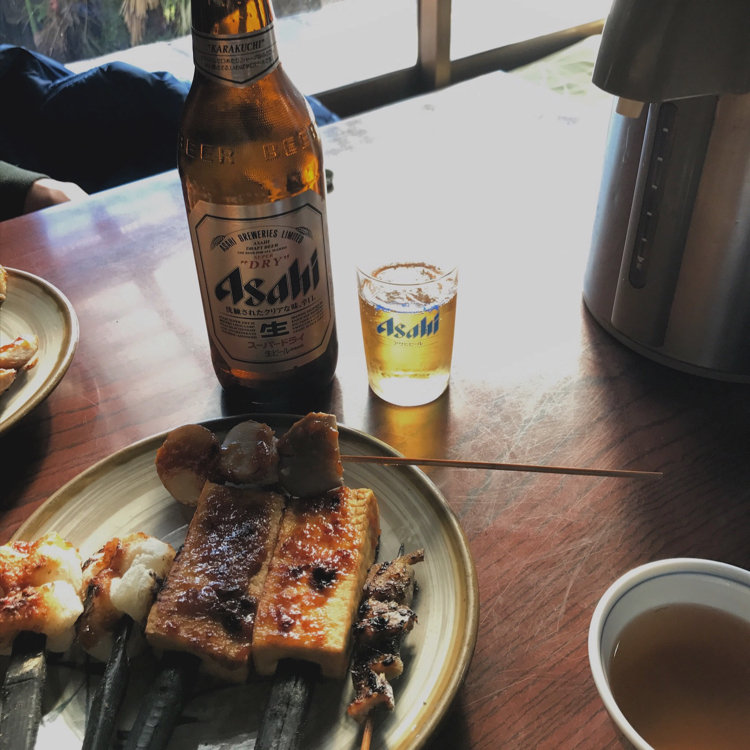 鰊、お餅、里芋、厚揚げの味噌田楽です! ビールによく合います🍺 #わたしの街