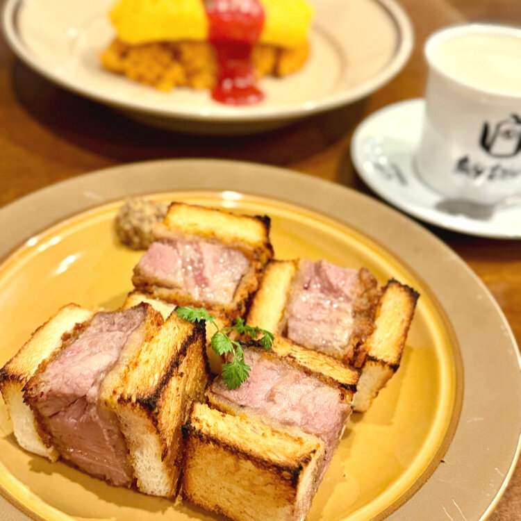 『麻里布珈琲』の名物メニュー「奇跡の厚切りレアかつサンド」。 12時間かけて真空低温調理されている極厚の柔らかカツ。 ホットサンドで、パンがサクカリなのが美味しかったです。 山口の素敵ユーザーさんが美味しそうなプリンを召し上がってるお店→#麻里布珈琲ロースター の本店です。 🐾 岩国空港から車で10分弱、岩国駅から5分とアクセスがいいので、時間調整にも便利。 #山口#岩国市#麻里布珈琲#ご当地グルメ#旅先ごはん