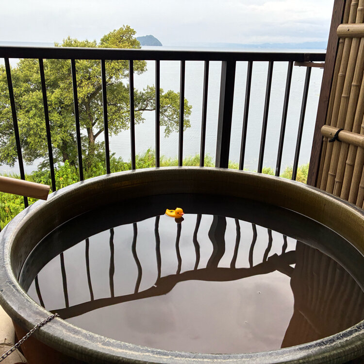 今回の滋賀の旅の目的は、残暑をぬる湯で楽しむ、で、部屋付き露天風呂で20℃ほどの冷泉が掛け流しできるお宿です
