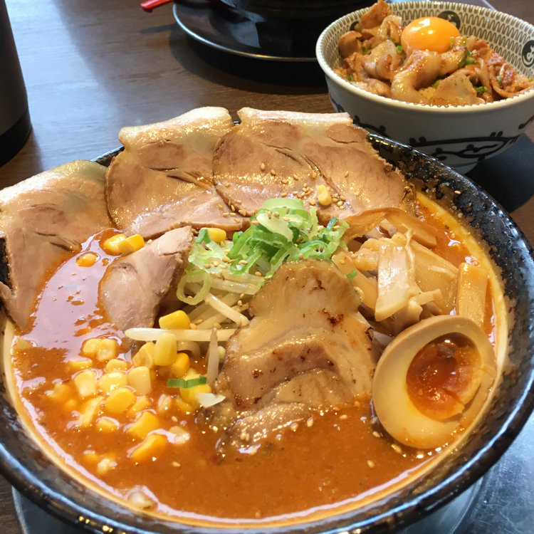 荒川らーめん魂あしら 特製辛味噌ラーメン 奥の丼はスタミナ丼のハーフ。 どちらも美味しかった。 #荒川らーめん魂あしら